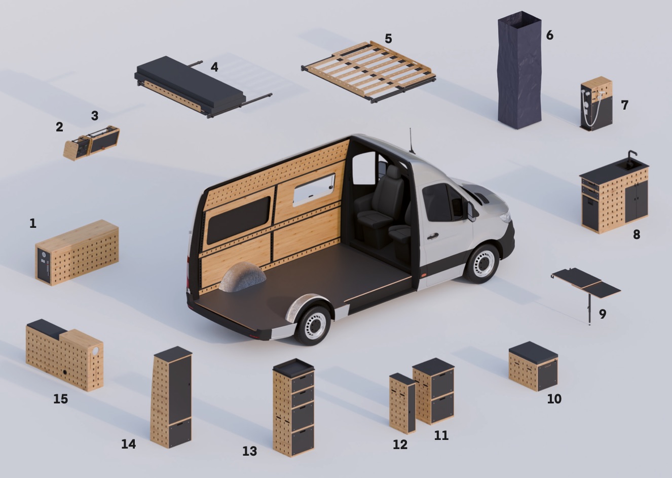 Mit wenigen Handgriffen wird es zur Sitzgruppe mit Tisch für zwei, zur Couch, zum Einzelbett (190 x 80 cm) oder –ausgezogen zum Doppelbett (190 x 140 cm, bei Küchenmodul max. 130 cm). Auf Wunsch sind auch 200 oder 210 cm Länge möglich. Dank Lattenrost und Kaltschaum- Matratze ist hoher Komfort garantiert. Eingeklappt ragt das Letto BB Flex nur 30 cm in den Laderaum und lässt ausreichend Platz.
